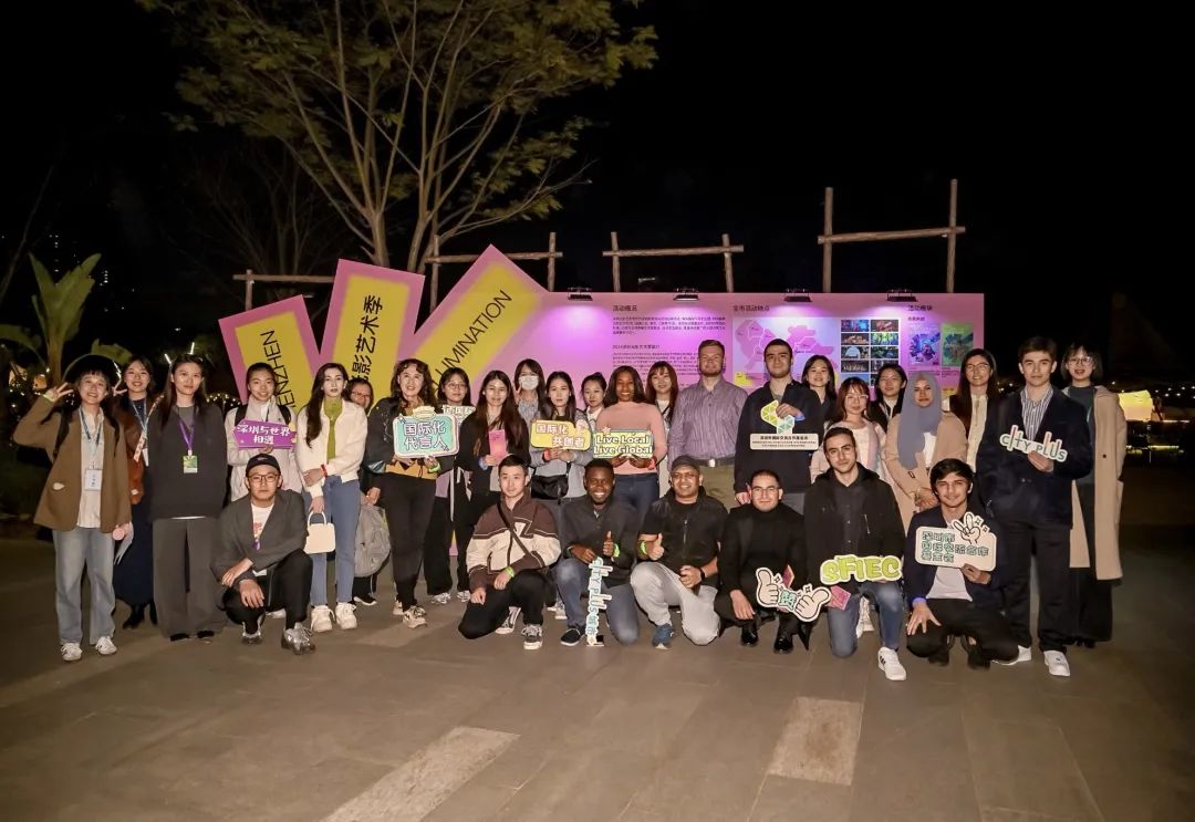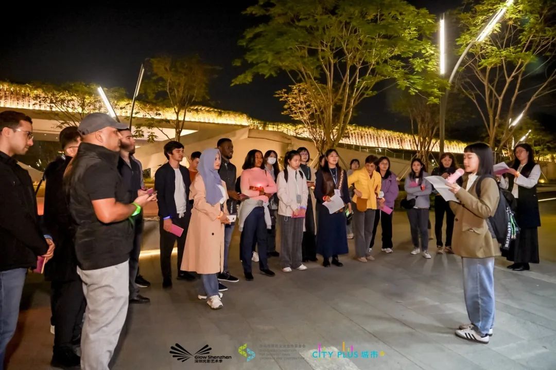 Global Friendship Community“Infinite Illumination, Shadow Night Tour” was successfully held on Jan.8thThe event is co-organized by SFIEC and Glow Shenzhen,attracting over 30 participants from nine different countries and regions,including Pakistan, Belarus, the US, Morocco, Nigeria, and IndonesiaCheck out the highlights of this event!和深圳光影艺术季福田主活动地点策展方ParticlePlusSFIEC host welcomes everyoneRepresentatives from Asia Data Group- General planner and executor of Glow Shenzhen -- Curator of Futian main activity area - each participant shared their往左滑动查看更多 Swipe left to view more