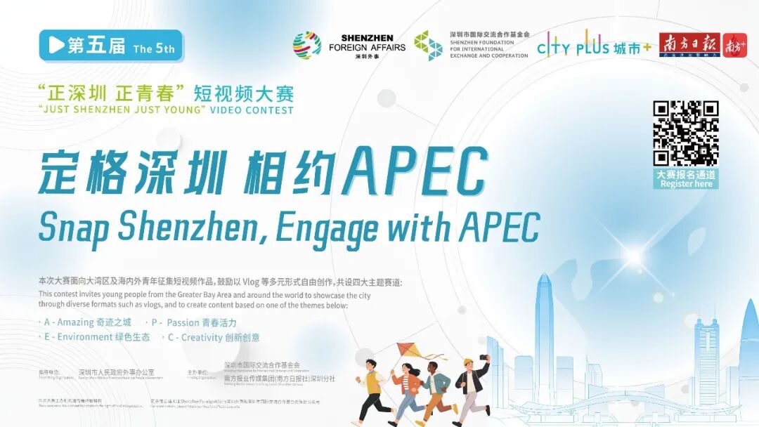 With the theme "Snap Shenzhen, Engage with APEC", the 5th “Just Shenzhen Just Young” Video Contest calls for submissions from young creators—both local and international—across the Greater Bay Area. Participants are encouraged to create freely in Vlog format.